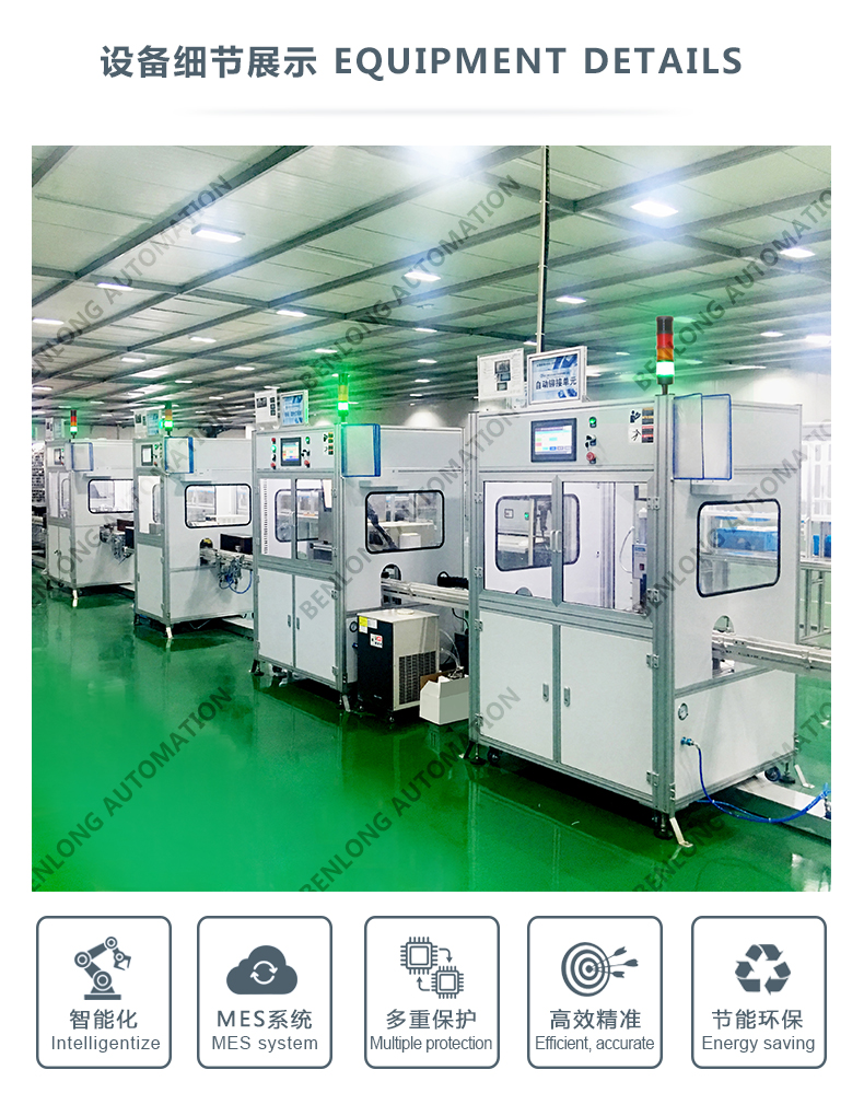 具有自动供料、装配、锁螺丝、插拔力、通断、耐高压、移印、激光、包装、码垛、AGV物流、缺料报警等工序的装配、在线检测、