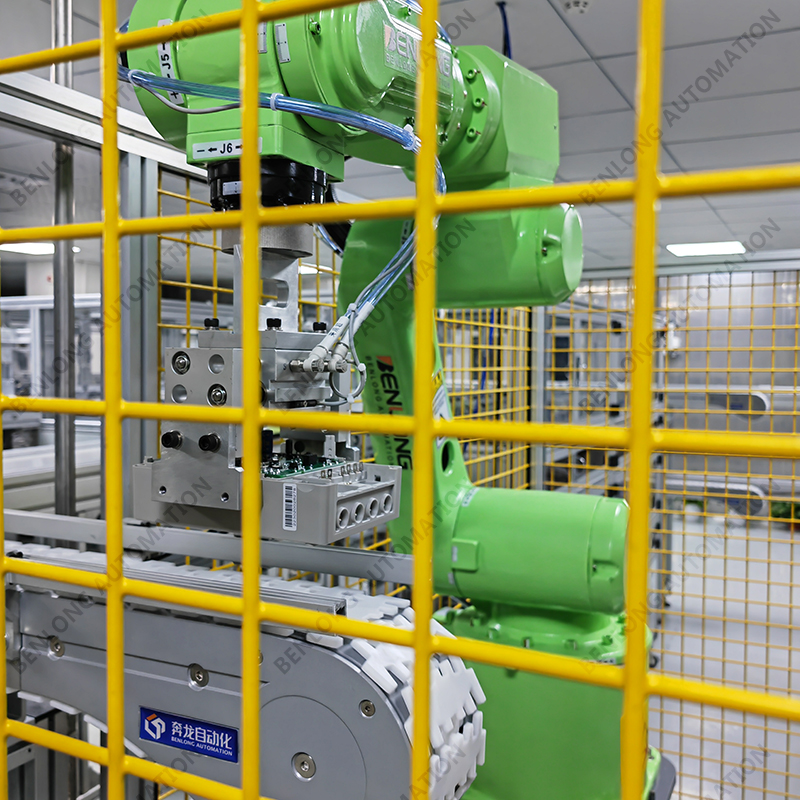 复校检测、装配铭牌、扫码资产信息数据对比、合格不合格区分、包装、码垛、AGV物流、缺料报警等工序的装配、在线检测、