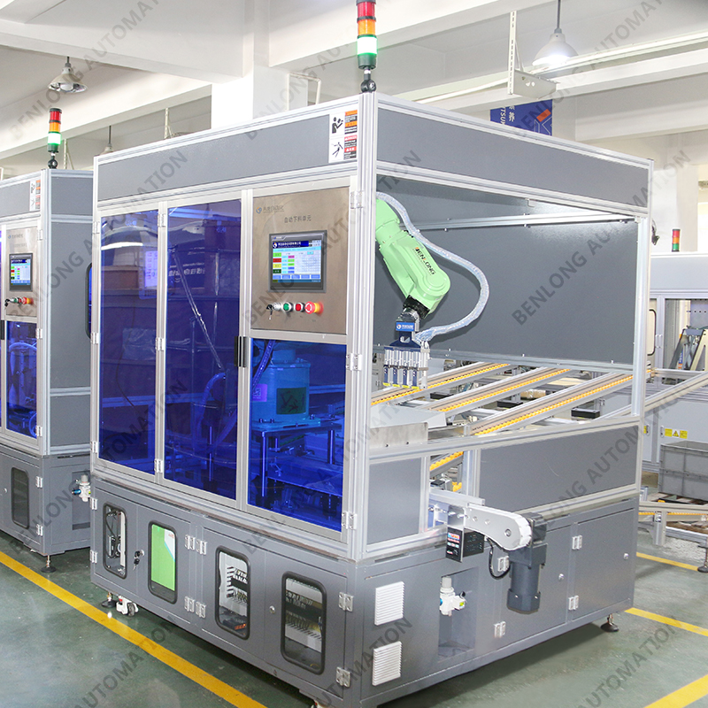 压、回路电阻、气密性检测、移印、激光标刻、CCD外观检测、合格不合格区分、包装、码垛、AGV物流、缺料报警等工序的装配、