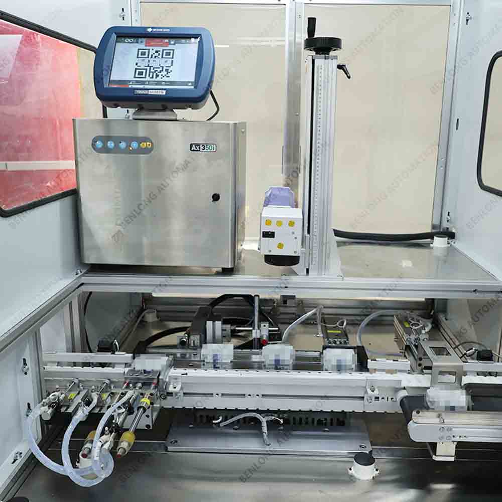 具有自动激光打标二维码或产品ID码、CCD检测、不良品区分、缺料报警、竖立翻转水平、水平翻转竖立等工序的在线监测、实时监控、质量溯源、条码识别、关键元器件寿命监测、
