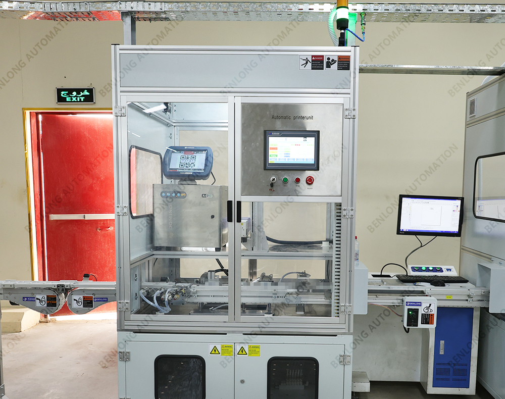 具有自动上料、自动激光打标、自动读码检测、自动下料、缺料报警、90°旋转等工序的在线监测、实时监控、质量溯源、条码识别、关键元器件寿命监测、数据存储、MES系统