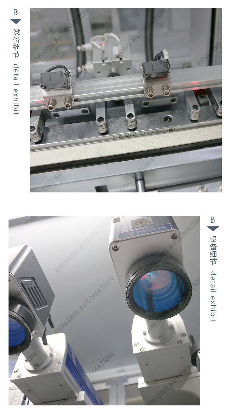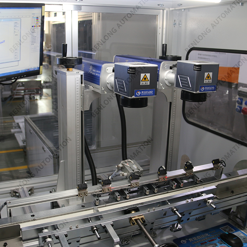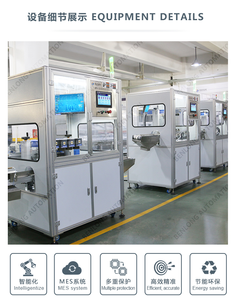 具有自动上料、精密加工、激光打标、自动下料、除尘、不良品区分、缺料报警等工序的在线监测、实时监控、