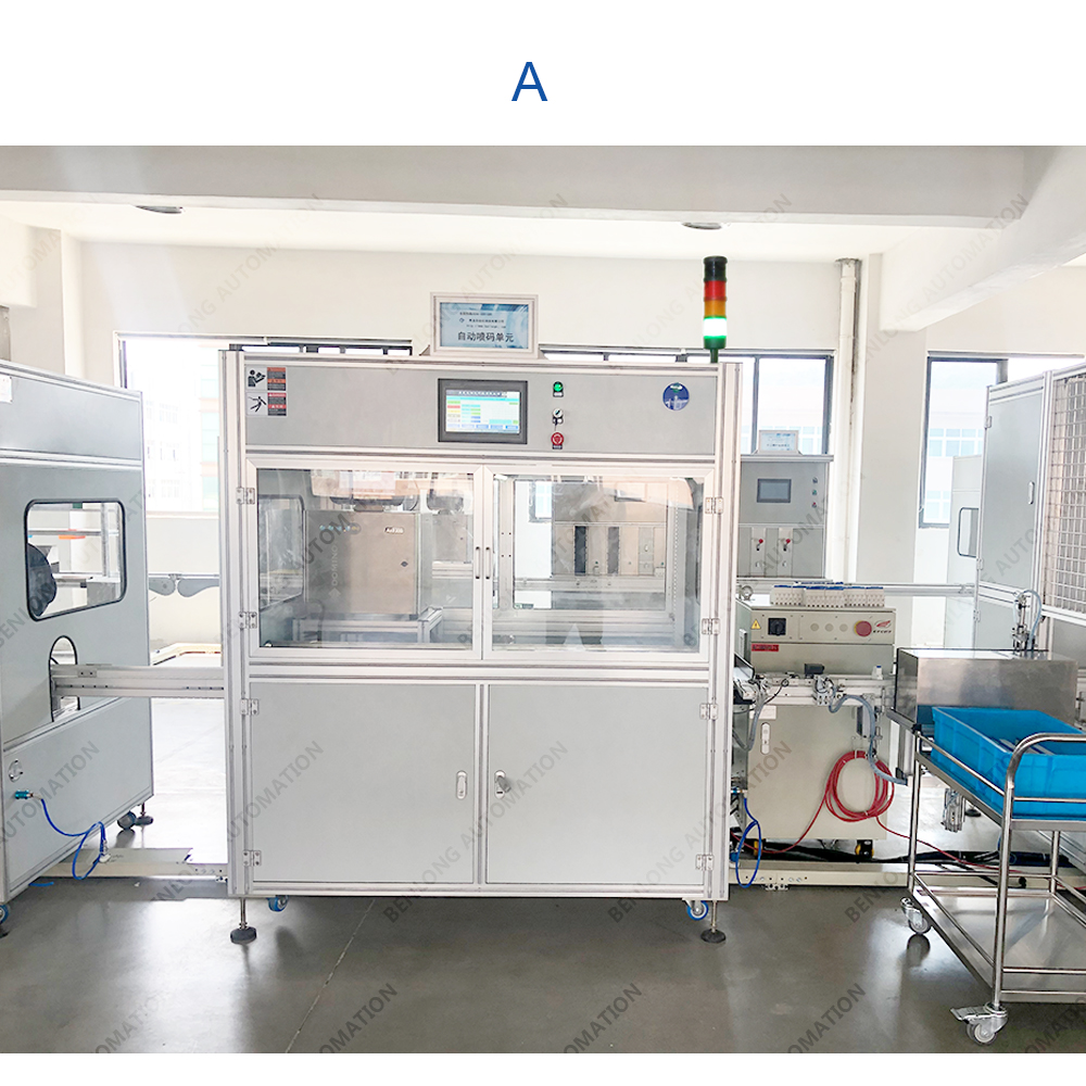 具有自动激光打标二维码、喷条形码或产品ID码、CCD检测、不良品区分、缺料报警、竖立翻转水平、水平翻转竖立等工序的在线监测、