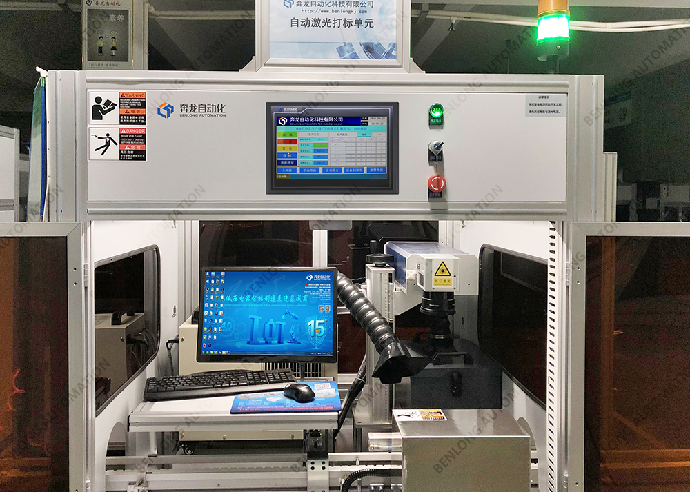 具有自动激光打标产品商标、产品参数、CCD视觉检测、不良品区分、缺料报警、自动旋转等工序的在线监测、