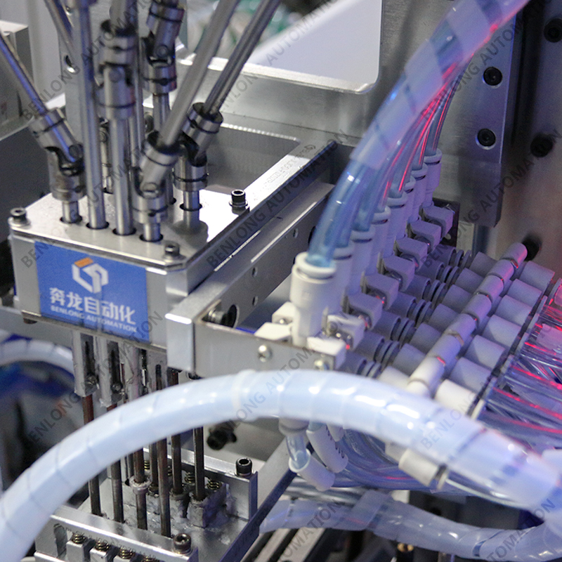 贴标、喷码、装袋、切袋、热收缩、包装、封箱、捆扎、码垛、AGV物流、缺料/满料报警等工序的装配、在线检测、