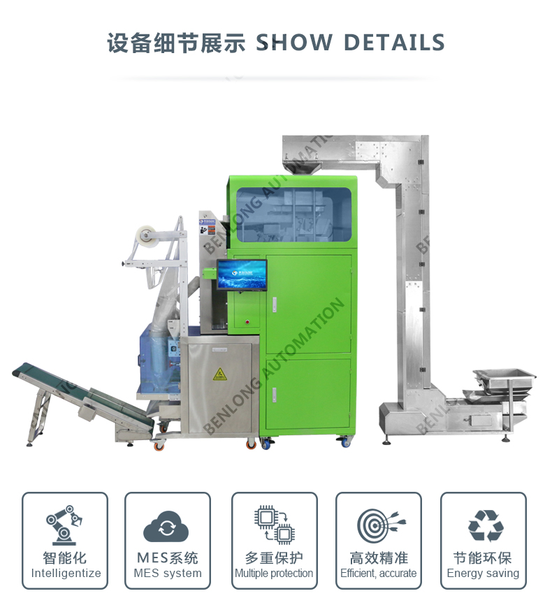 机器视觉数粒,自动放料,自动感应落料,自动封切,自动出包;可单品或者多品种混合投料包装。