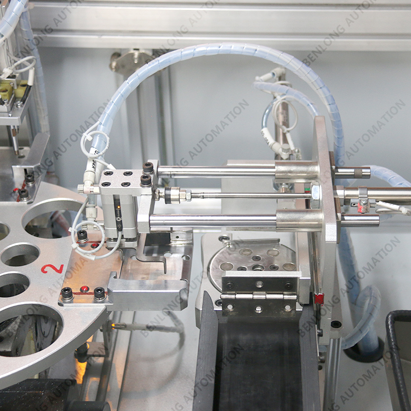 具有自动穿铆钉、CCD检测、不良品区分、缺料报警、翻转竖立等工序的在线监测、实时监控、质量溯源、条码识别、关键元器件寿命监测、数据存储、