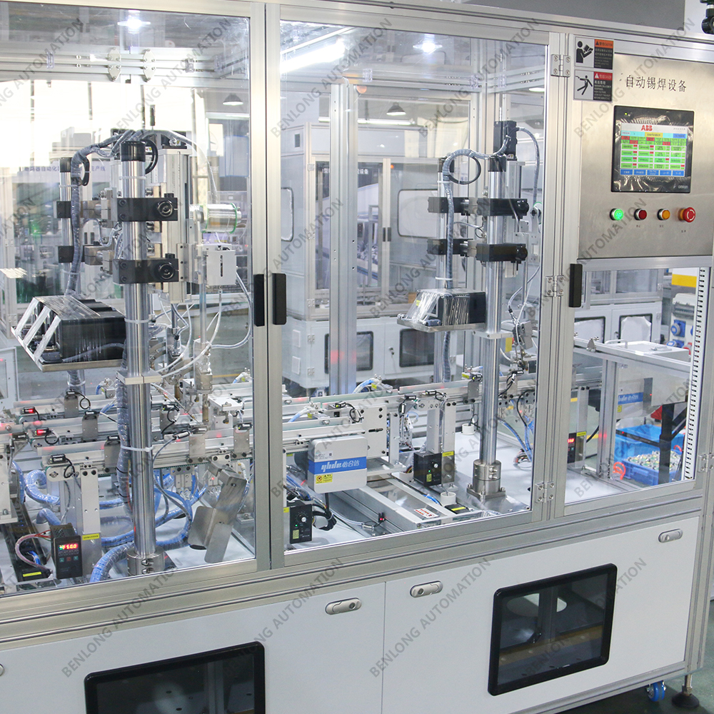 具有自动装配、加注焊接辅助材料、检测、焊接、锡焊、不良品区分、包装、码垛、AGV物流、缺料报警等工序的装配、