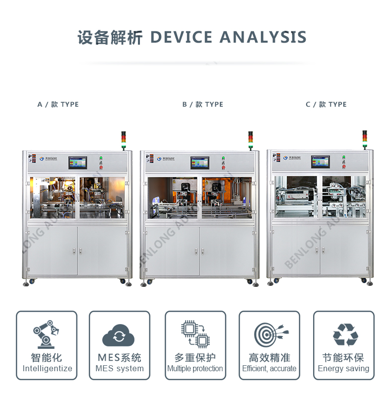 具有自动可靠性、耐高压检测、不良品区分、下料、缺料/满料报警等工序的在线监测、实时监控、质量溯源、条码识别、关键元器件寿命监测、数据存储、