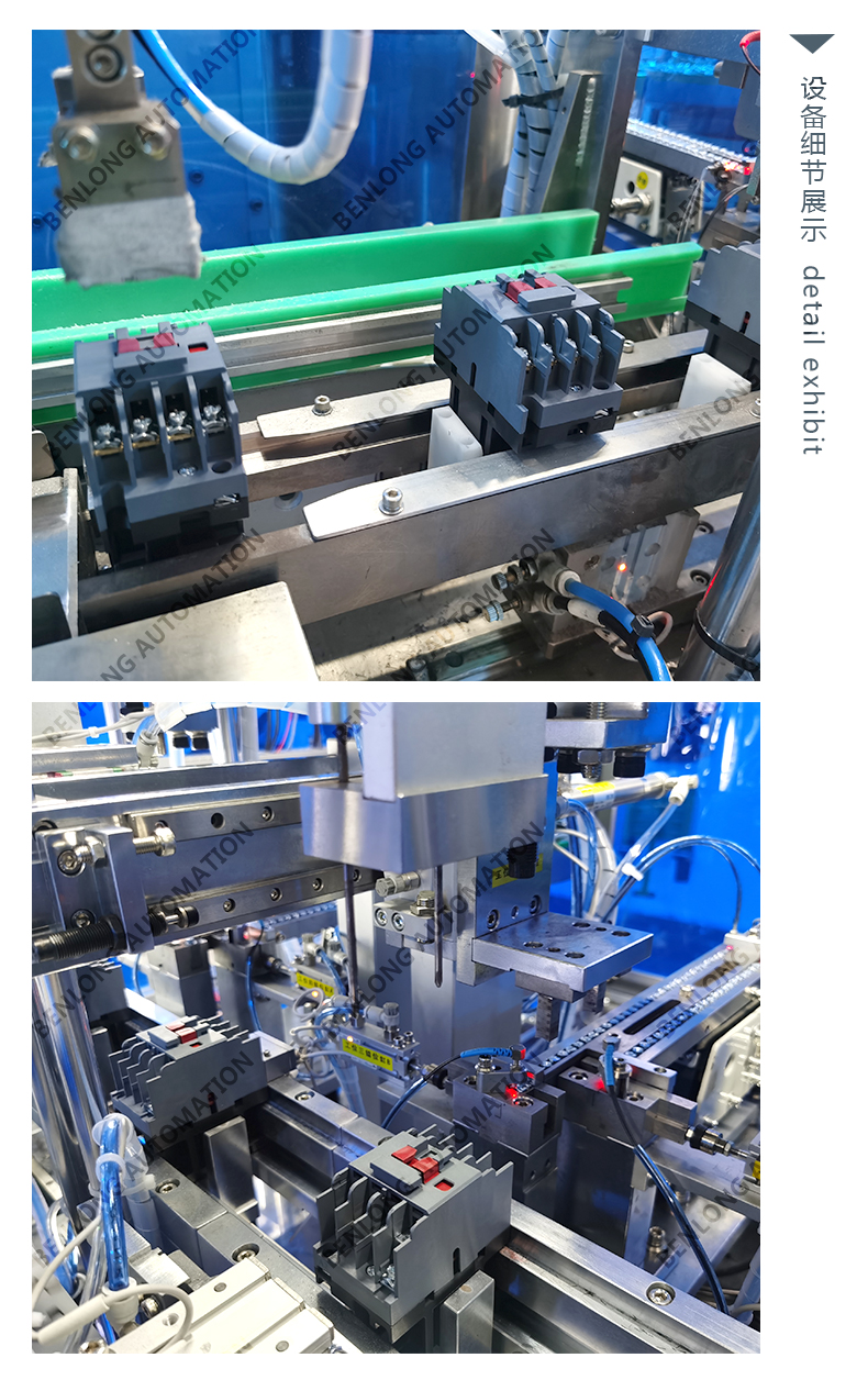 具有自动上料、插芯装配、底座装配、主辅静触头装配、人工装配宝塔弹簧、锁上下盖螺丝、锁瓦片螺丝、通断、耐压、功耗、