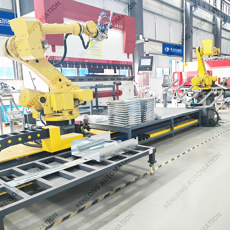 冲压焊接生产线:根据客户特定要求产能、节拍、实现自动化上下料切割、冲压、折弯、焊接等生产程序,