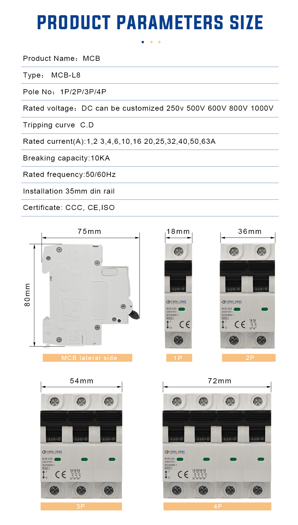 额定电流(A):1,2 3,4,6,10,16 20,25,32,40,50,63A