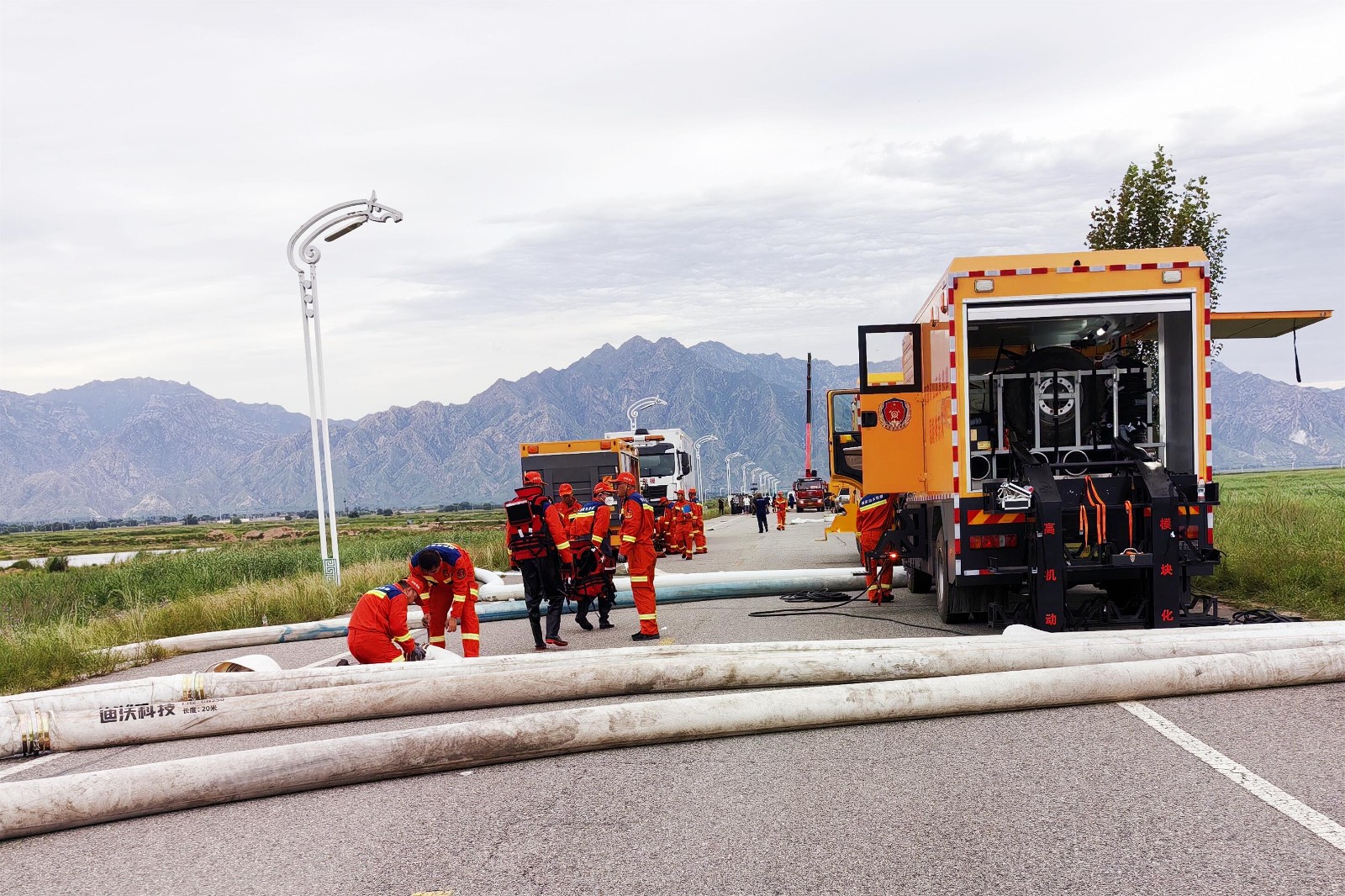 库房里,两辆大流量排水抢险车被迅速唤醒,经过细致检查,整装待发。8月7日9时30分,指挥车、宿营车、装备运输车连同两辆大功率排涝车等7辆车22人集结完毕,承载着下游村庄沉甸甸的希望,冲破重重雨幕,向着200多公里外的土默特左旗哈素海现场疾驰而去。