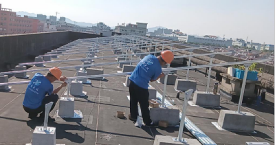 图为余姚电厂实施厂外屋顶光伏项目(余姚电厂陈东摄)