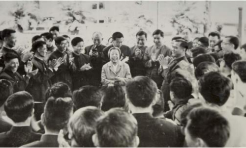 图为邓颖超在缅甸大使馆接见援建人员