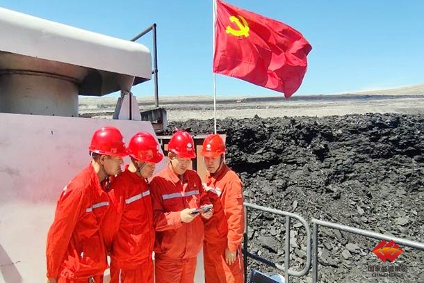 图为胜利能源露天矿采掘队员工在电铲上收看庆祝中国共产党成立100周年大会盛况