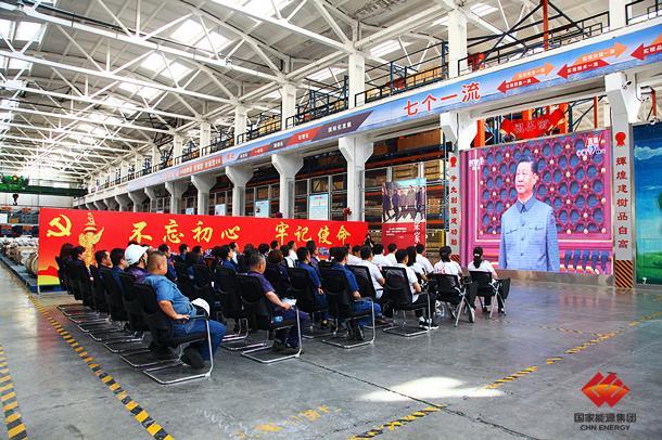 图为神东物资供应中心在厂房收看庆祝中国共产党成立100周年大会盛况
