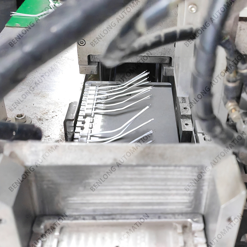 具有自动上料、加注助焊剂、零部件成型、焊接、装配、检测、下料、缺料报警、不良品区分、90°旋转等工序的在线监测、实时监控、质量溯源、