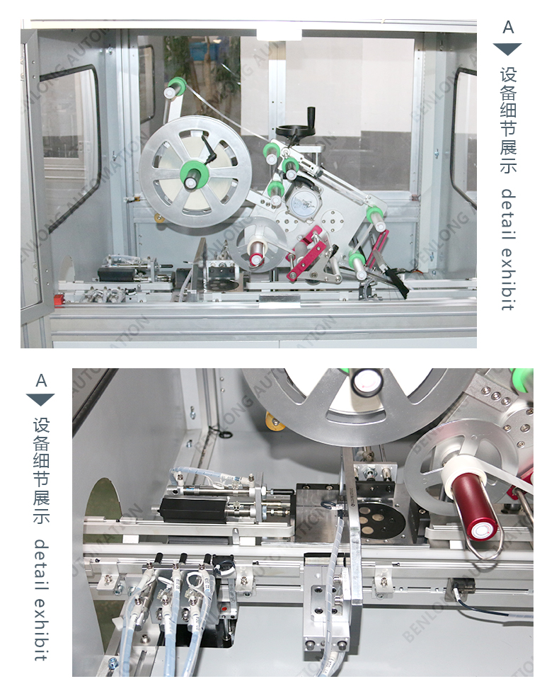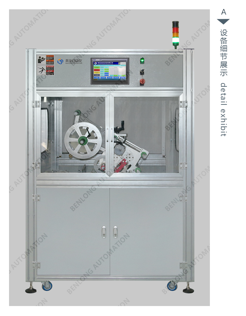 具有自动贴标(二维码标签、条形码标签、ID码标签、图案等)、CCD检测、不良品区分、缺料报警、竖立翻转水平、水平翻转竖立等工序的在线监测、