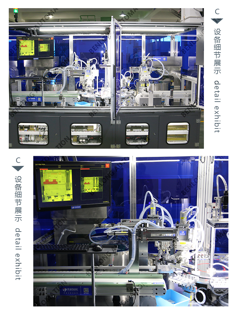 具有自动装配止动件、CCD视觉检测、不良品区分、缺料报警、不良品回流返工等工序的在线监测、实时监控、质量溯源、条码识别、