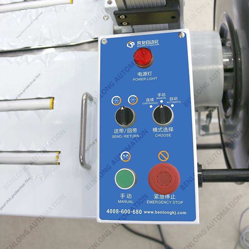 人工放料或其他包装设备出料口自动放料,自动捆扎。