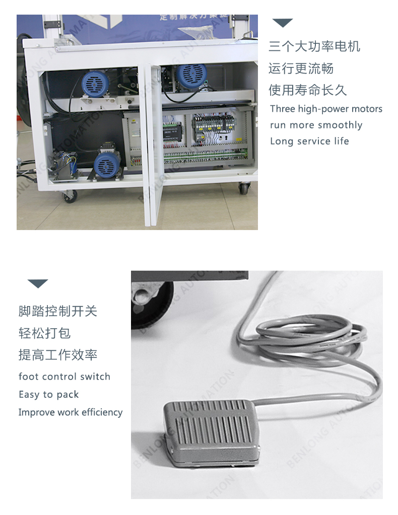 人工放料或其他包装设备出料口自动放料,自动捆扎。                    关于售后